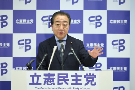 立憲民主党の野田佳彦代表は21日の記者会見で、政府の総合経済対策が21兆3000億円程度の規模に膨らんだことに懸念を示した=国会内 【時事通信社】