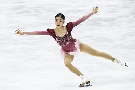 フィギュアスケートのグランプリ(GP)シリーズ第6戦。女子フリーで千葉百音がトップの144.33点をマークし、合計217.22点で優勝。第3戦に続くGP連勝でファイナル進出を決めた=22日、ヘルシンキ 【EPA時事】