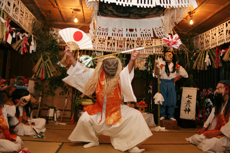 文化審議会は28日、国連教育科学文化機関(ユネスコ)の無形文化遺産への新規提案候補に「神楽」と「温泉文化」を選定した。写真は宮崎県高千穂町の「高千穂の夜神楽」(全国神楽継承・振興協議会提供) 【時事通信社】