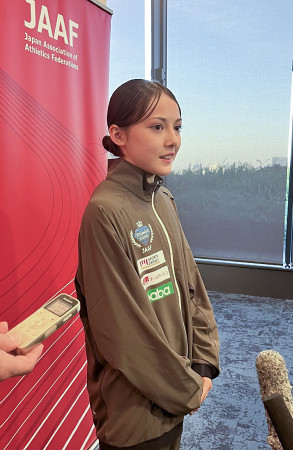 日本陸連が次世代選手を強化育成する制度「ダイヤモンドアスリート」の認定式が1日、東京都内で行われ、12期生に選ばれた女子中長距離のドルーリー朱瑛里は「日本から世界へ、一歩ずつ挑戦したい」と決意を述べた 【時事通信社】