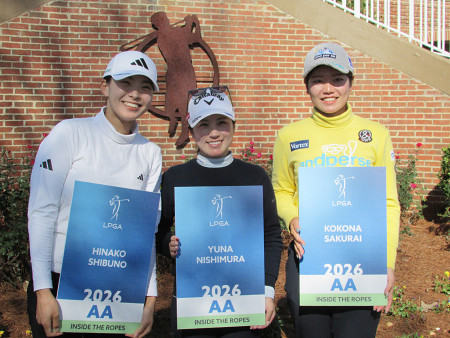 米女子ゴルフツアーの来季出場権を獲得した(左から)渋野日向子、西村優菜、桜井心那=9日、アラバマ州モービル 【時事通信社】