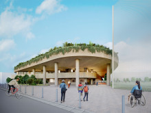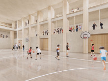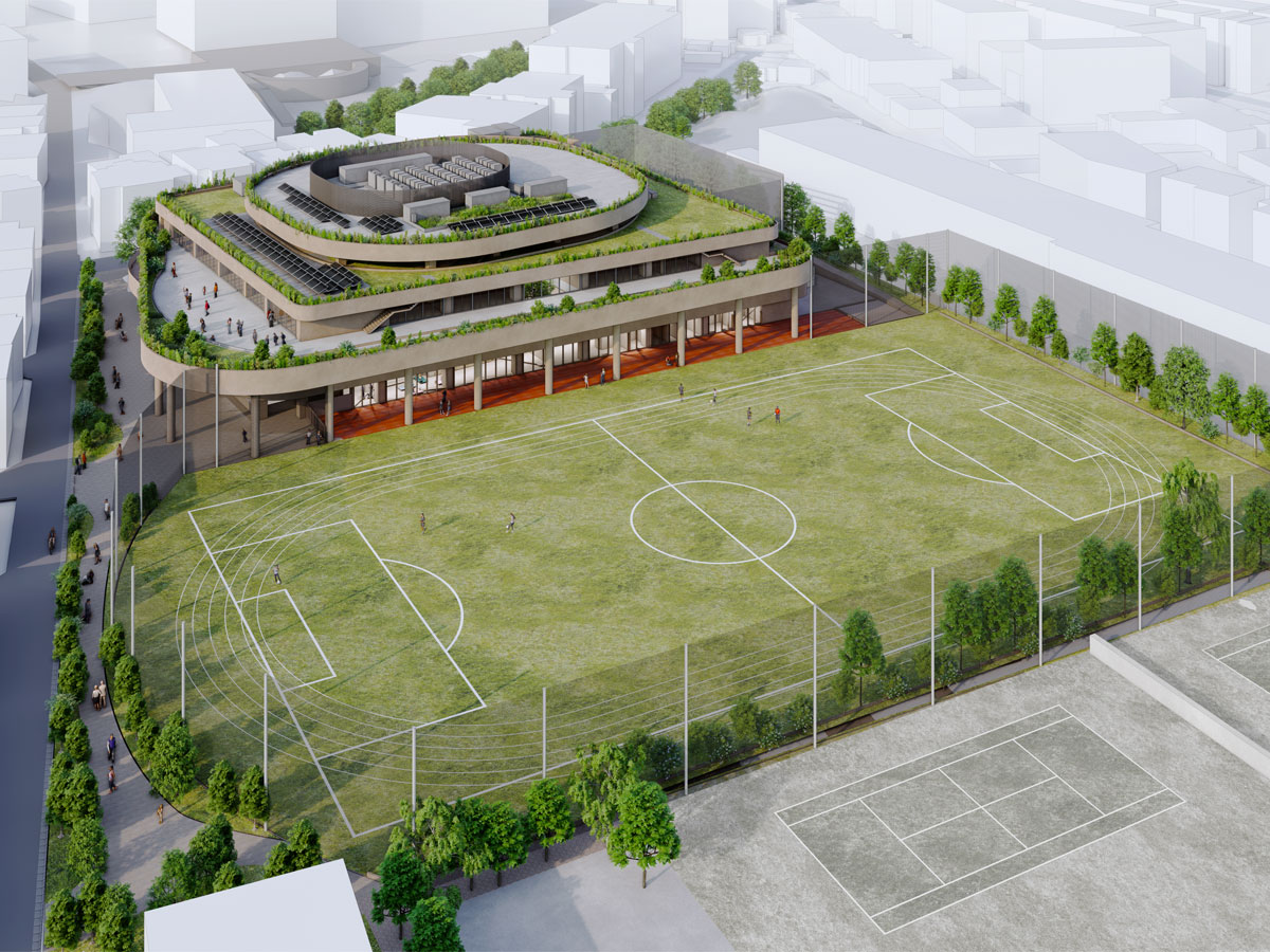 代々木中学校の鳥瞰(ちょうかん)イメージ=渋谷区、当初予算案発表