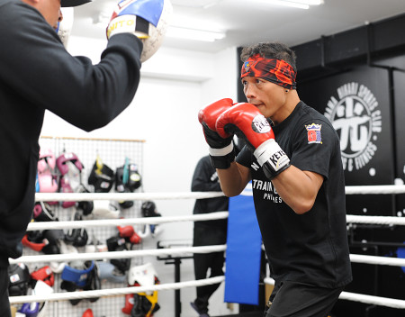 WBAバンタム級挑戦者決定戦(15日、横浜BUNTAI)で、増田陸と対戦するノニト・ドネアが9日、横浜市鶴見区のジムで練習を公開。サンドバッグ打ちで鋭いパンチを披露し、状態の良さをアピールした。 【時事通信社】