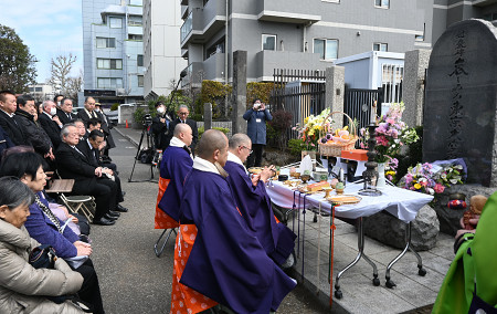 一晩で約10万人が命を落としたとされる東京大空襲から10日で81年。被害が甚大だった都内の下町では9日、戦災孤児で、昨年12月に亡くなった海老名香葉子さんが続けた慰霊行事が行われた=東京都台東区 【時事通信社】
