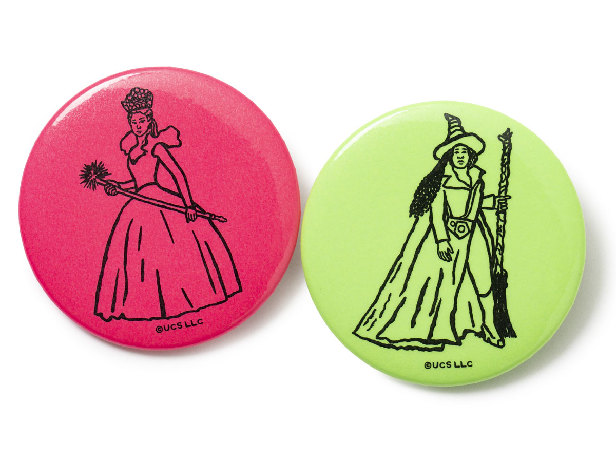 キービジュアルのデザインを使う缶バッジのイメージ=ラフォーレ原宿で映画「ウィキッド 永遠の約束」コラボ企画