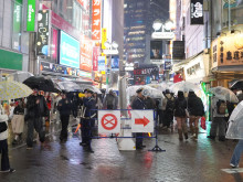 渋谷センター街・バスケットボールストリートは右側通行で対応。一部に柵を置いたほか、警察官が道の中央に立ち誘導棒を振りながら、「センター街は右側通行です」「ご協力ありがとうございます」などと声を上げて通行者を促した。