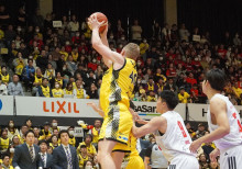 後半は立ち上がりで一時逆転を許すが、ホーキンソン選手の3Pシュートを皮切りに、速攻からの得点などで再び2桁点差をつける。永吉佑也選手は身長差のある選手に対して守備で体を張ったほか、3Pシュートを決め場内を沸かし、66-50とリードを広げた。ジャン・ローレンスハーパージュニア選手との連係プレーで得点を重ねたウェルシュ選手。ロブパスをそのままシュートした場面もあったが、「あまりいいパスではなかったかもしれないが、昨日練習していて、どこにどういう風にパスを出してほしいか話していた」プレーだった。