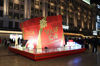初日には点灯式を実施。同ブランドのアンバサダーである女性グループ「TWICE」「MISAMO」で活動するMINAさんがゲストとして登場。MINAさんが登場すると歓声や名前を呼ぶ声などが上がった。