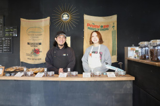 店舗では、コーヒー豆(各2,160円)、両者のロゴを配したコラボレーション仕様のタンブラー(4,400円)や、ザ・ライジングサン・コーヒーのマグカップ、Tシャツ、ロングスリーブTシャツなども販売する。