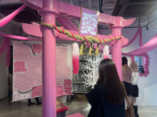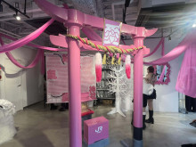 ギャルマインドを活用して企業の会議を活性化させ、新規事業のアイデアなどを生み出すワークショップ「ギャル式ブレスト」を手がけるCGOドットコム(渋谷区渋谷2)が、JR貨物(港区)と共に体験型イベント「ギャル神社~あなたの『好き』、届けます。~」と題して企画した。消費者の中でも特に若年層への認知を広げようと、「神社」内には至る所にピンク色で「JR貨物」の文字をあしらい、物資だけでなく「思い」を運ぶ企業としてのイメージを伝えるのが狙い。