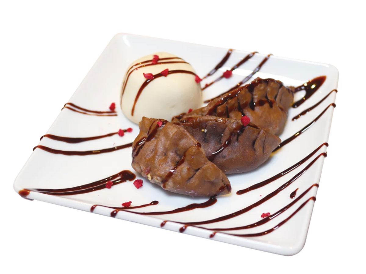 ピンク色の皮で包むブルーベリーチーズ味=渋谷・恵比寿のギョーザ店「渋谷餃子」、バレンタイン向けスイーツメニュー