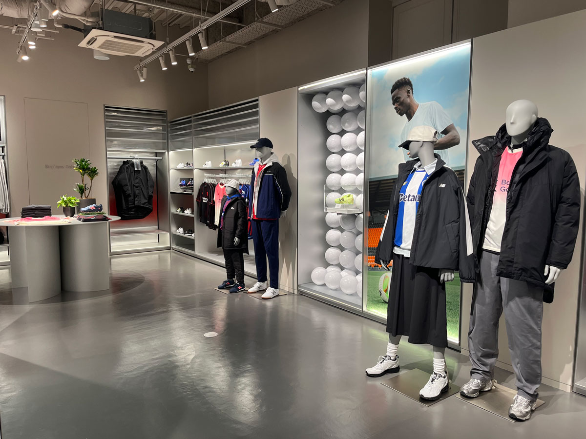 2階で展開するフットボール商品=原宿の「ニューバランス」グローバル旗艦店、大規模改装