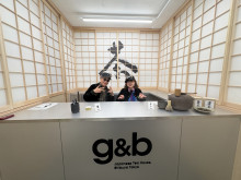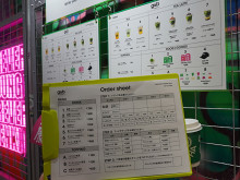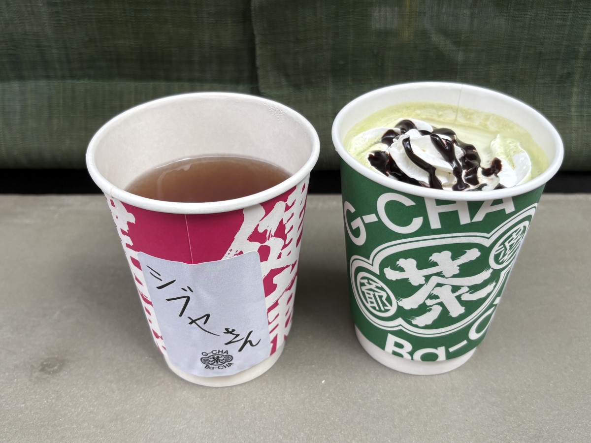名前を書いたステッカーを貼って提供する=渋谷に年配のスタッフが働く茶店「ジーチャバーチャ」