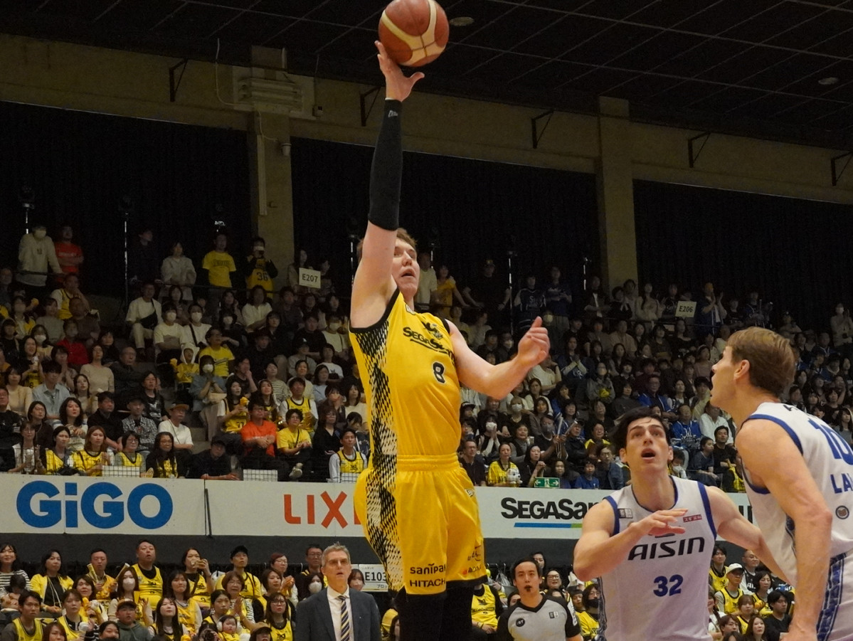 Bリーグ・サンロッカーズ渋谷(以下、SR渋谷)が4月4日、青山学院記念館(渋谷区渋谷4)でシーホース三河(以下、三河)と対戦し68-73で惜敗した。