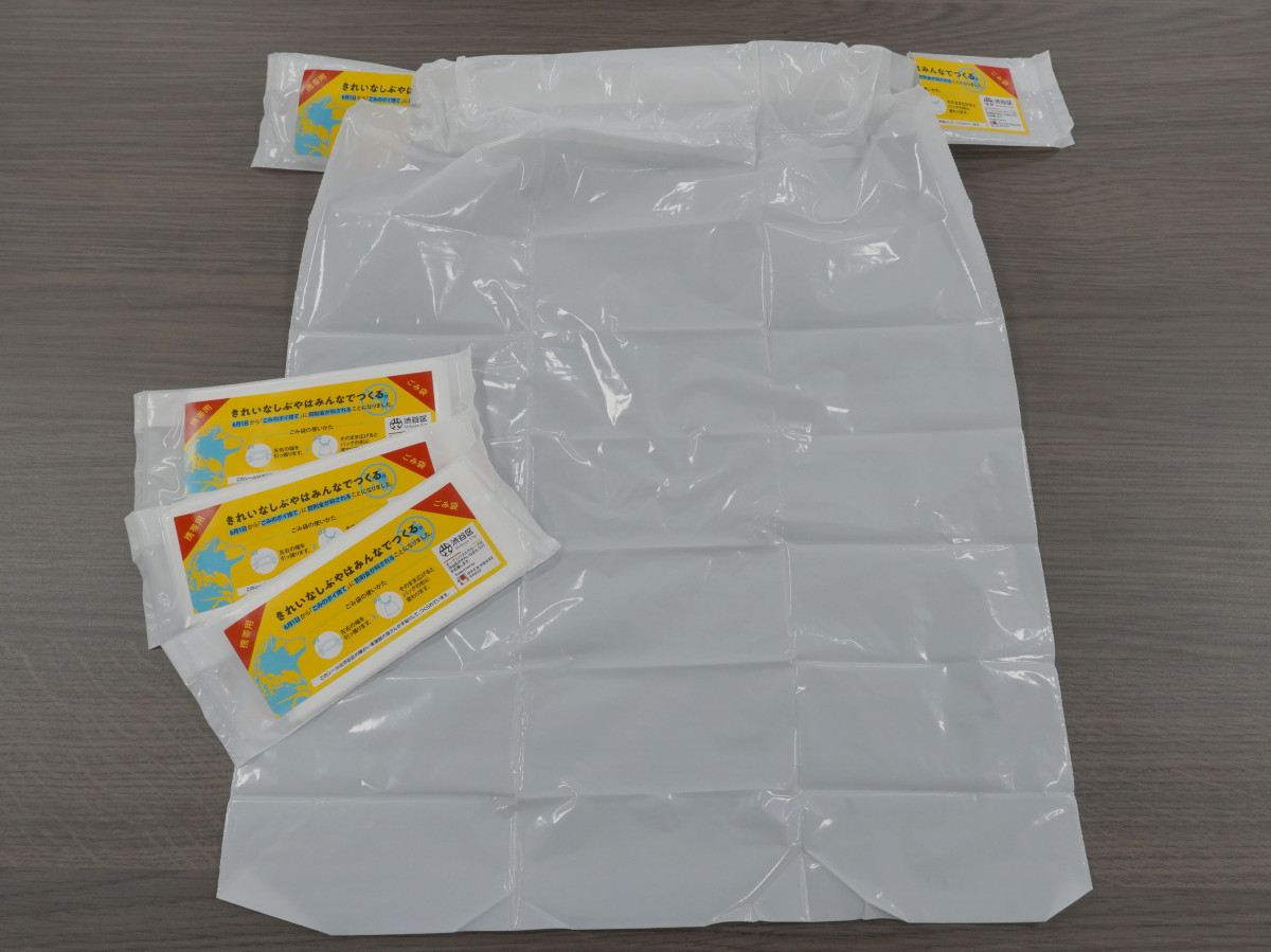 紙おしぼりサイズがA4サイズのごみ袋に広がる=オープンハウスグループ、渋谷区に携帯用ごみ袋寄贈