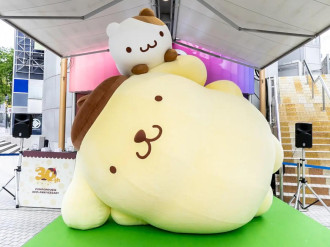 サンリオのキャラクター「ポムポムプリン」の巨大立体オブジェが4月15日、渋谷の3カ所に登場した。