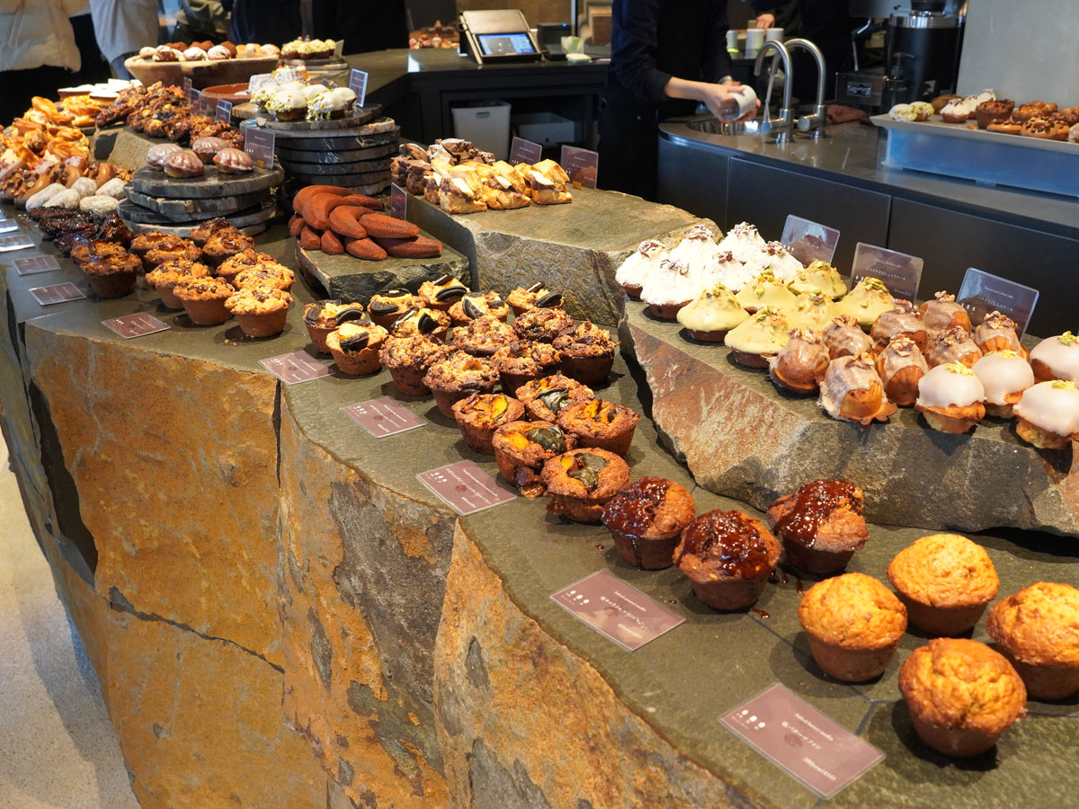 焼き菓子を中心とした商品が並ぶカウンター=表参道に「アマムダコタンカフェアンドベイク」