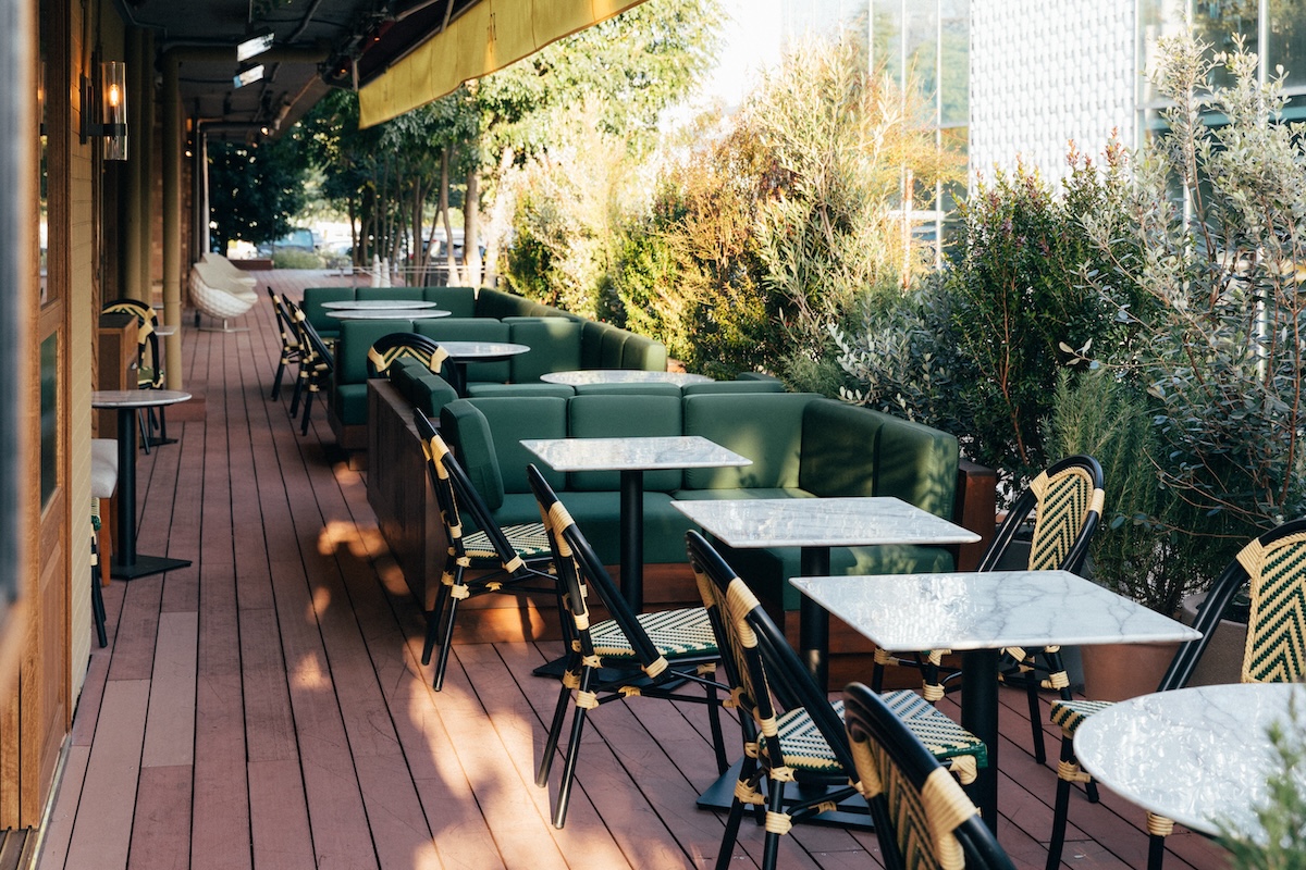 ウッドデッキのテラス席=代官山・旧山手通りにレストラン「Kuss」
