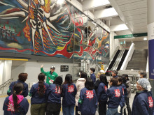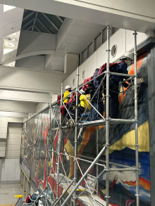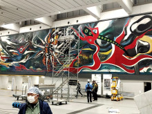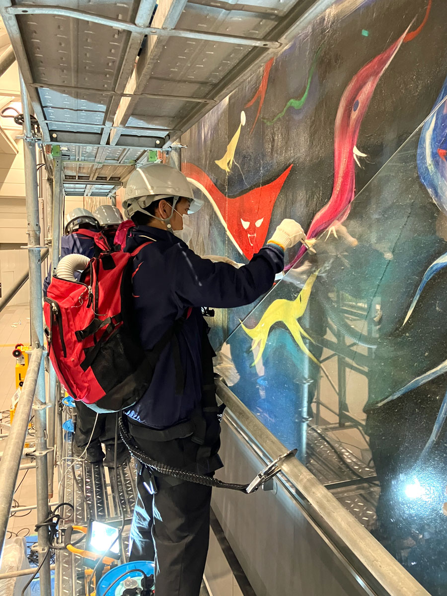 渋谷マークシティ連絡通路内で公開中の岡本太郎の巨大壁画「明日の神話」の恒例「すす払い」が11月7日と14日の終電後、2日間にわたり実施された。