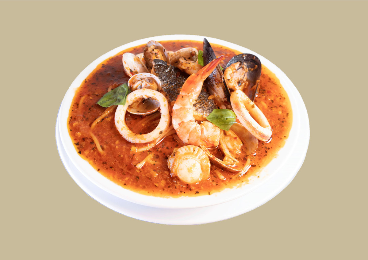 「海の幸とトマトのスパゲッティ」=渋谷のスープパスタ店におひとりさま専用カウンター