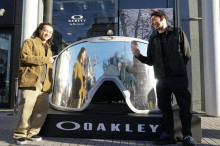 新ゴーグルのバンドに「命」の文字が=原宿・オークリーストアに平野歩夢選手
