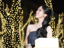 (左から)長谷部健渋谷区長やMINAさん(TWICE/MISAMO)らが登壇した点灯式=表参道イルミネーション点灯