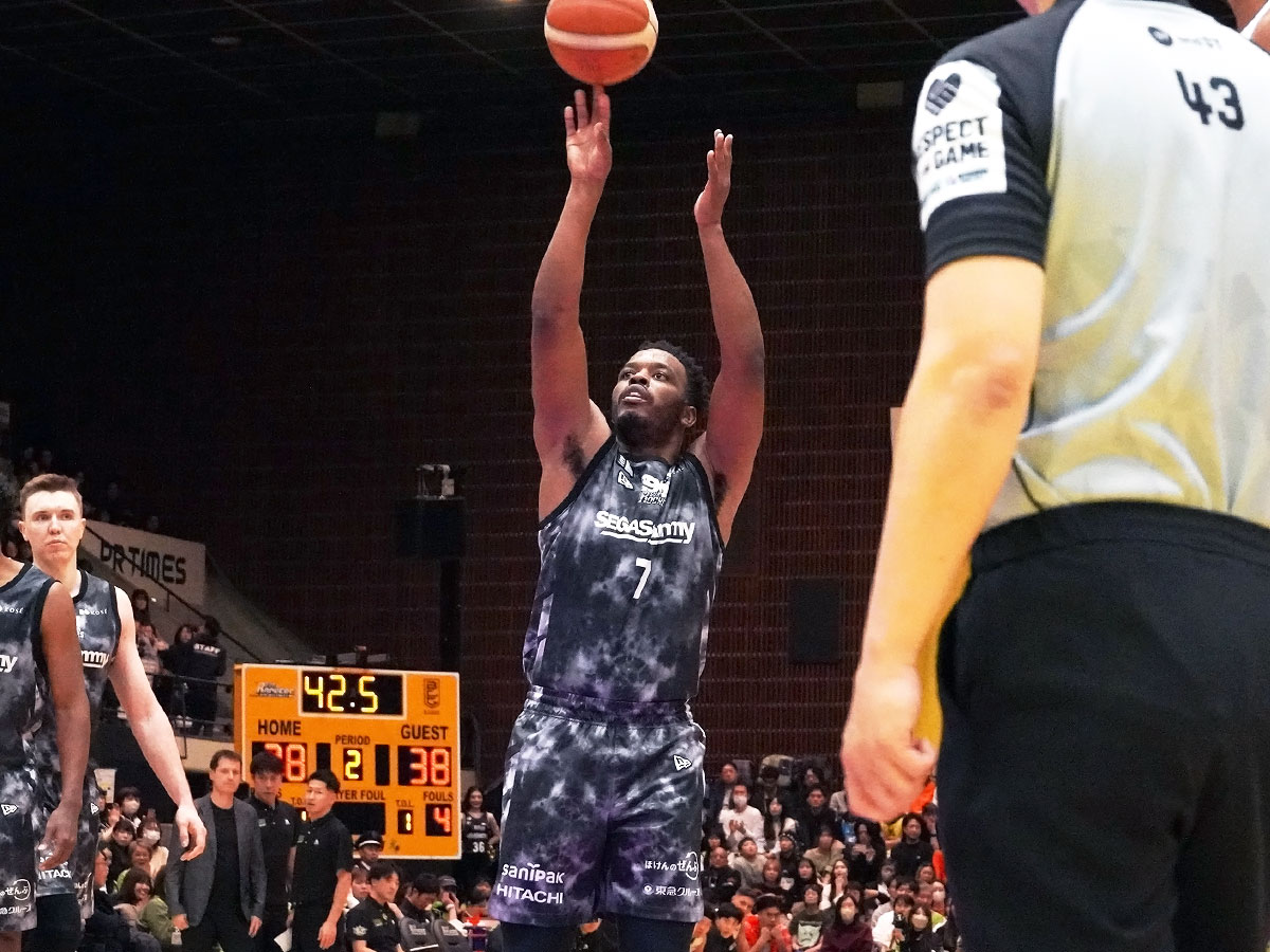 加入後フリースローで初得点を挙げたアンドリュー・ランダル選手=サンロッカーズ渋谷、北海道に惜敗
