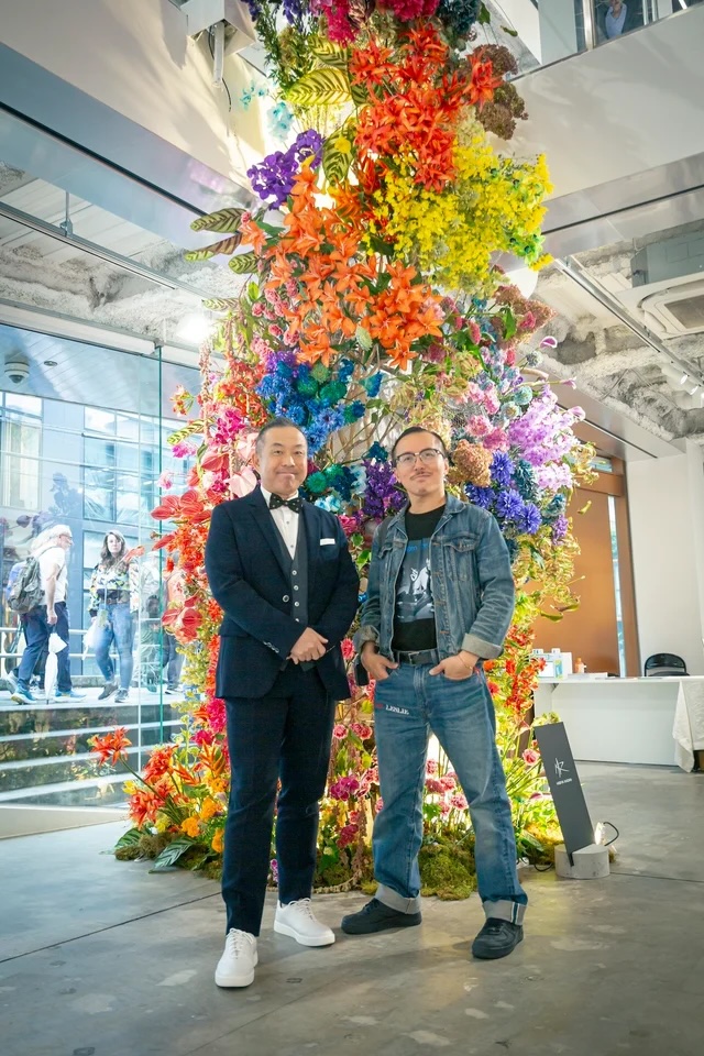写真左=日比谷花壇・宮島浩彰社長、右=写真家レスリー・キーさん