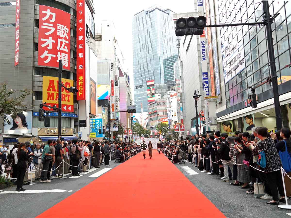 文化村通りに出現した約60メートルのレッドカーペット=渋谷ファッションウィーク2025秋