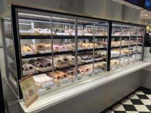 ドーナツが並ぶ商品陳列棚=恵比寿に「ミスタードーナツ」