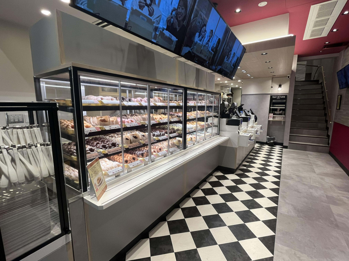 レジカウンターなどがある1階=恵比寿に「ミスタードーナツ」