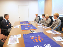 Jリーグ・FC東京の仲川輝人選手、遠藤渓太選手、佐藤恵允(けいん)選手、安斎颯馬選手らが12月9日、長谷部健渋谷区長らを表敬訪問し、2025シーズンの終了を報告した。