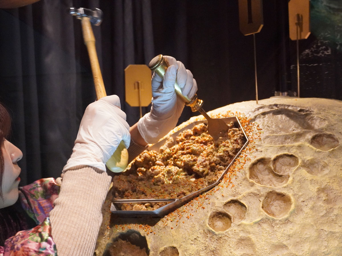 チョコレートを「採掘」する様子=代々木上原の和洋菓子店「小楽園」のバレンタイン
