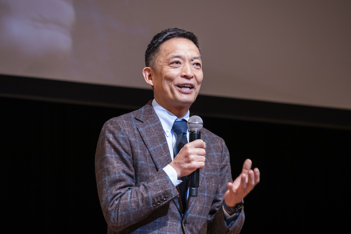 あいさつする長谷部健渋谷区長=「SHIBUYA NODOJIMAN」本選大会