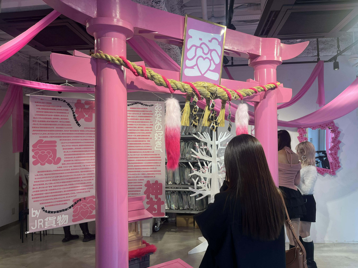 ピンク色の鳥居やさい銭箱に、尻尾付きのはかま――渋谷センター街に2月12日、「ギャル巫女(みこ)」たちが「バイブス、アゲ~!」とおはらいする「ギャル神社」が期間限定でオープンした。