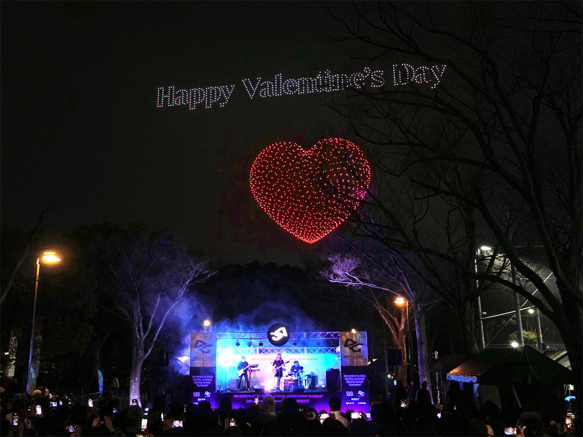 バレンタインデーを祝うフォーメーションも=渋谷の上空で3030機のドローンショー