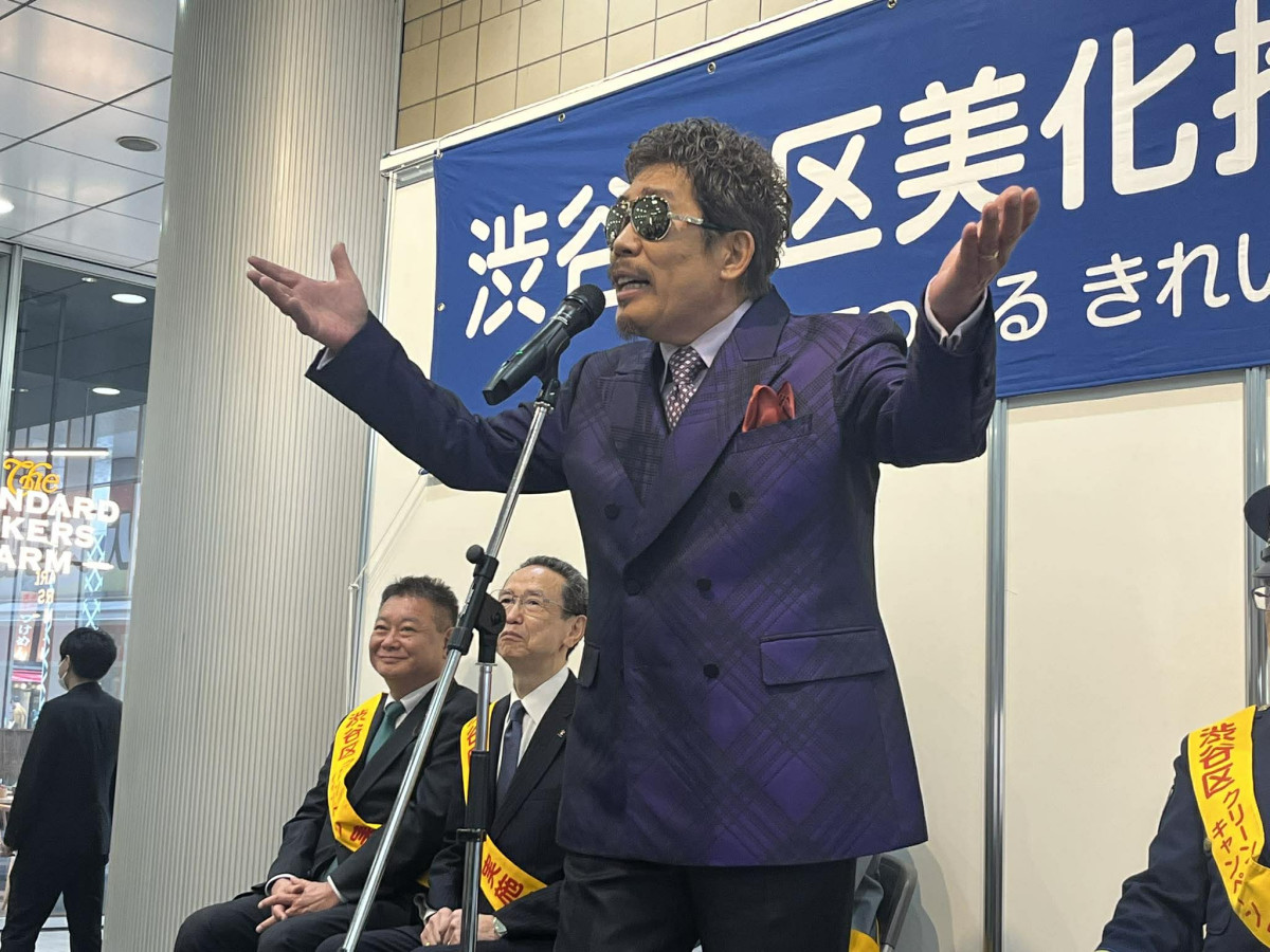 渋谷区観光協会アンバサダーに就任したミュージシャン鈴木雅之さんが「シブヤの日」の4月28日、渋谷マークシティで行われたクリーンキャンペーンセレモニーに登壇し、自身の楽曲「渋谷で5時」になぞらえて「そう今から~、『美化』が始まる~」と歌い、街の美化を呼びかけた。