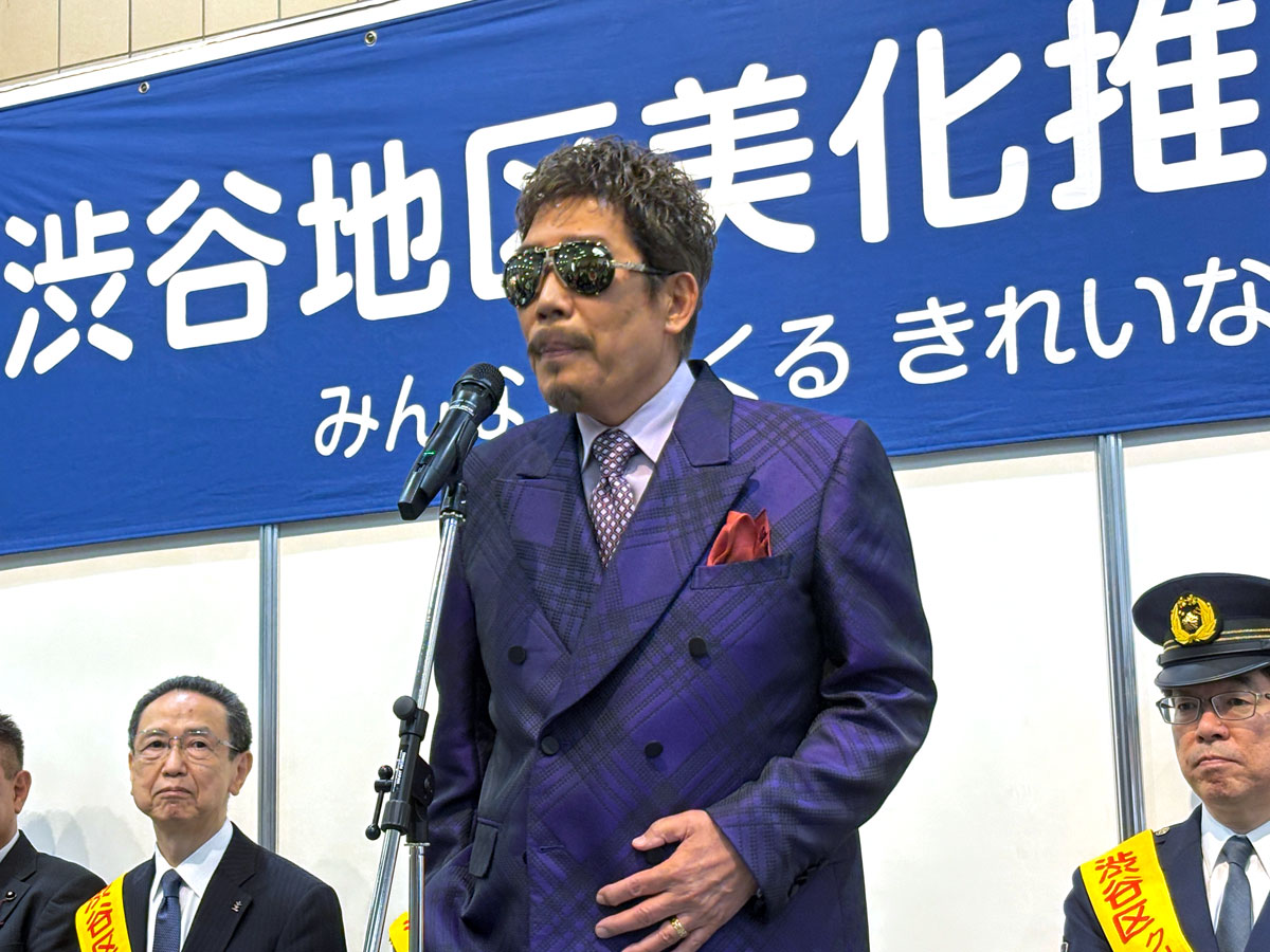 渋谷区観光協会アンバサダーに就任したミュージシャン鈴木雅之さんが「シブヤの日」の4月28日、渋谷マークシティで行われたクリーンキャンペーンセレモニーに登壇し、自身の楽曲「渋谷で5時」になぞらえて「そう今から~、『美化』が始まる~」と歌い、街の美化を呼びかけた。