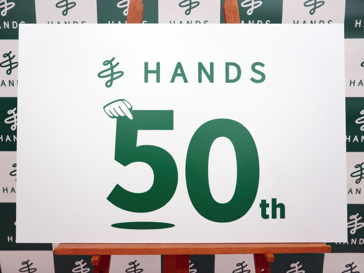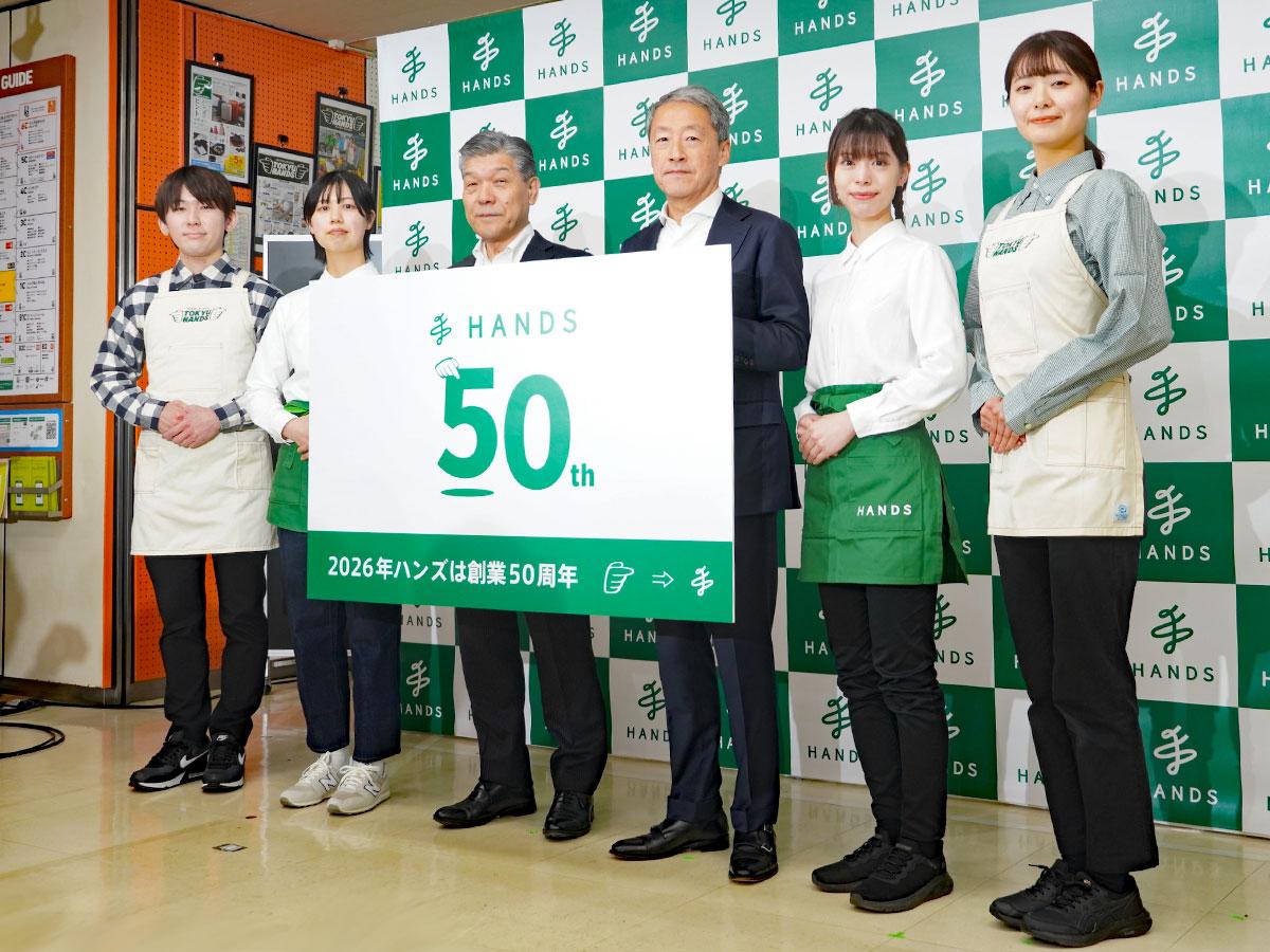 8月に創業50周年を迎えるハンズ(新宿区)が1月21日、ハンズ渋谷店(渋谷区宇田川町)で周年記念ロゴの発表などを行った。