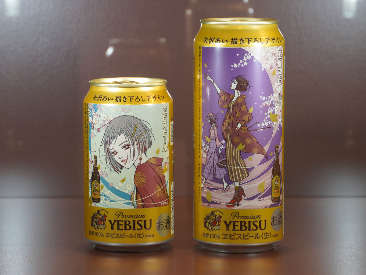 作品をデザインするヱビスビール缶=矢沢あいさん描き下ろし美人画、恵比寿で展示