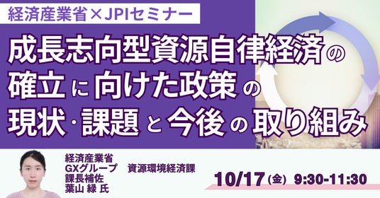 JPI(日本計画研究所)は、経済産業省 GXグループ 資源環境経済課 課長補佐 葉山 緑 氏を招聘し、成長志向型資源自律経済の確立に向けた政策の現状・課題と今後の取り組みについて詳説いただくセミナーを開催します。