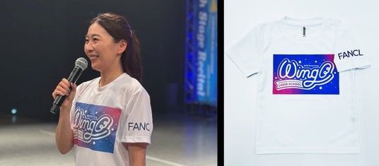 2026年度のチアスクールオリジナルレッスンTシャツに、当社のロゴが入ります。今年のデザインテーマは、「Wing(ウイング)」。「翼」や「羽ばたき」をイメージし、スクール生一人ひとりが大きく夢に向かって成長してほしいとの願いが込められている中、当社も一緒に応援していきます。