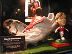 同店の特徴のひとつに、階段の壁を利用して作られた“サッカー・ギャラリー”が挙げられる。展示品は「地方からこれを見るために来るファンがいる。世界じゅう探してもこの店にしかないという逸品も多い」(堀口店長)というほど貴重なもので、同店とサッカー界との強い結びつきを感じさせる。98年W杯フランス大会優勝国フランス代表選手の直筆サイン入りユニフォームやマイケル・オーウェン(イングランド代表)とアラン・シアラー(元イングランド代表)の足型や、デビッド・ベッカム(イングランド代表)、アレッサンドロ・デル・ピエロ(イタリアナショナルチーム)、ラウル・ゴンザレス(スペイン代表)、リバウド(フランスナショナルチーム)など、世界の有名選手のサイン入りシューズはファンにとってはまさに“お宝”。中には2000年6月、「キリンカップ」日本対スロバキア戦のフリーキックによるゴール時に使用していた中村俊輔のサイン入りシューズも展示されている。